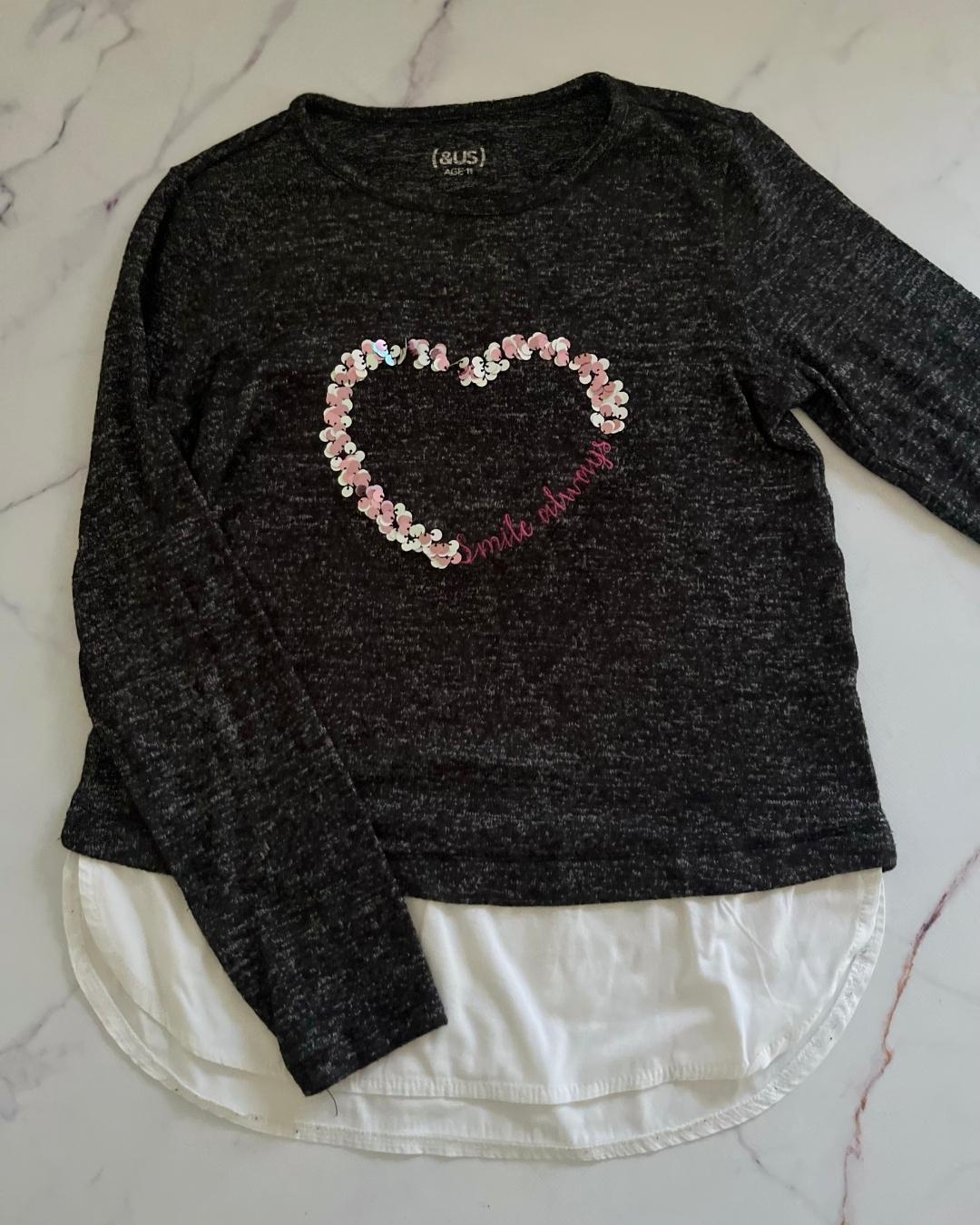 Black melange sequin heart top from &US