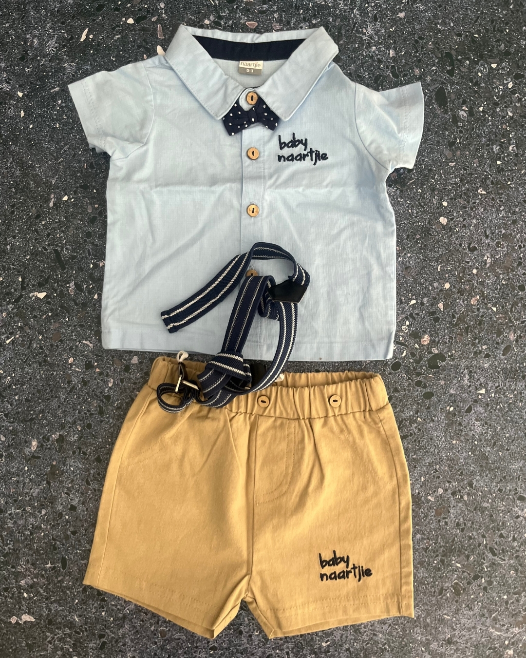 Naartjie blue collared shirt and brown shorts 0/3M